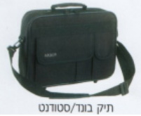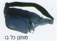 תיק אישי. תא מרכזי, תא חזית נוסף הנפתח לתאים רבים לציוד אישי, תא לטלפון נייד בצד, קלפה גדולה ועליה תא נוסף, רצועה לנשיאה על הכתף, אפשרות חיבור לחגורת המותן.